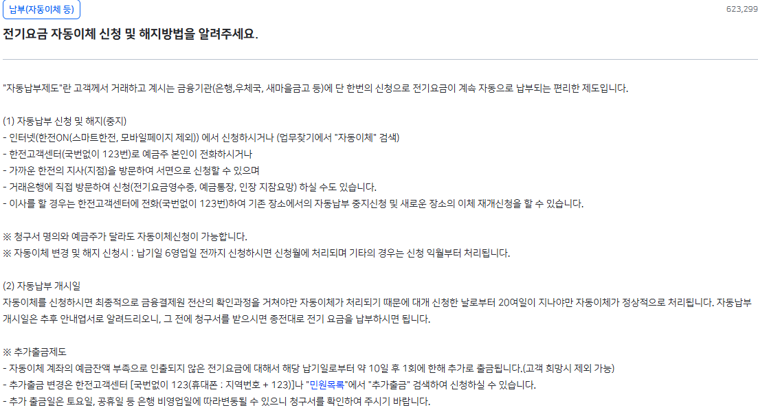 - 자동이체 신청: 한전 홈페이지 및 은행 방문으로 신청 가능.