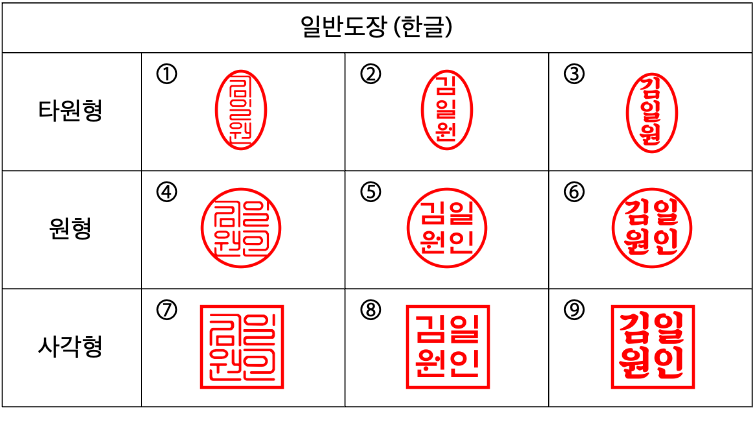 - 막도장: 시중에서 파는 도장 (효력은 있지만 법적 신뢰도는 낮음)