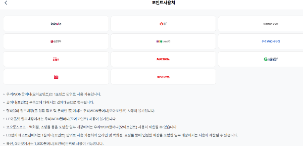 - 일부 상품(특정 제휴카드)의 포인트는 현금화 불가.