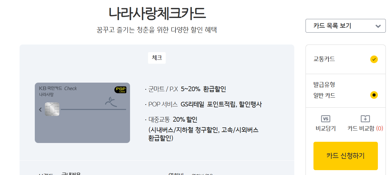 - KB국민은행: 시내버스와 지하철 이용 시 20% 청구 할인, 월 최대 1만 원 할인